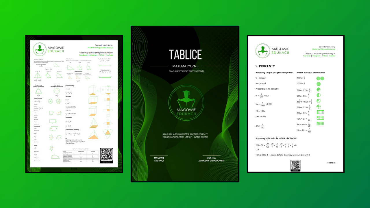 Przygotowałem dla Państwa zestaw profesjonalnych materiałów edukacyjnych do pobrania za darmo po zapisie do naszego Newslettera. Licencja obejmuje użytek prywatny, szkolny oraz komercyjny podczas prowadzenia zajęć edukacyjnych, pod warunkiem zachowania całości i niezmienionej formy cyfrowej lub drukowanej. Zakaz odsprzedaży.